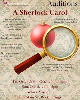 Auditions for our next play, "A Sherlock Carol," are happening!  For this hertwarming holiday mystery, we're looking to fill between 4-7 male roles and 2-6 female roles, with some actors playing multiple small roles.  No preparation or experience is necessary to try out.  All actors must be available for tech rehearsals Dec. 14-17 and shows Dec. 18-21 as well as set strike.