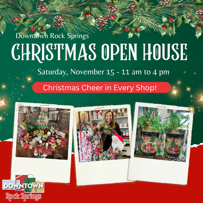 The Holiday season is arriving early in Downtown Rock Springs with the 2nd annual Christmas Open House. This festive community event invites residents and visitors alike to experience the magic of the season while shopping local, supporting Downtown businesses, and enjoying family-friendly holiday fun. The Christmas Open House will transform Downtown Rock Springs into a winter wonderland with participating shops offering seasonal specials, festive decor, and a variety of treats for shoppers. Whether you're searching for unique gifts or just soaking in the holiday spirit, there's something for everyone. In addition to exclusive shopping deals, quests can enjoy: holiday music, warm beverages and treats (at select locations), free face painting (in Bank Court 11am-2pm), free s'mores in Bank Court, in-store giveways and door prizes, Mistletoe Market (Broadway Theater) and Winter Shopapalooza (Bunning Hall).