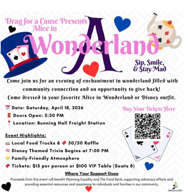 Your support helps strengthen our community. Proceeds from this event benefit Wyoming Equality and The Food Bank, supporting advocacy efforts and providing essential resources to individuals and families across Wyoming.