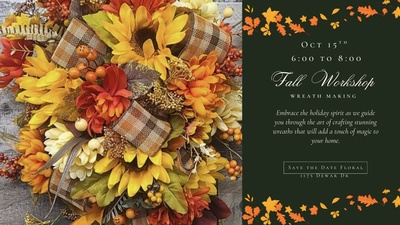Searching for a fun fall activity? Craft a cozy autumn wreath to brighten your home. Gather your friends to design a beautiful autumn wreath. All materials provided--just bring your creativity. Spaces are limited must have 5 people signed up/paid in order to hold the class.