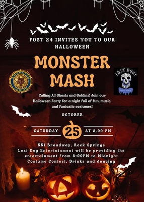 It's a Halloween party! Join us for a night of ghosts and ghouls, music and fun. Costume contest, dancing and music provided by Lost Dog entertainment.
