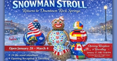 The Snowman Stroll is a family-friendly winter art experience featuring 24 life-sized snowmen created by local artists and displayed throughout Downtown.