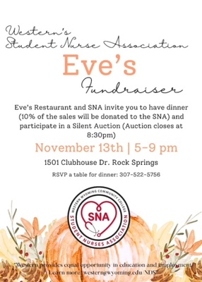 Eve's restaurant and SNA invite you to have dinner (10% of sales will be donated to the SNA) and participate in a Silent Auction (auction closes at 8:30pm)