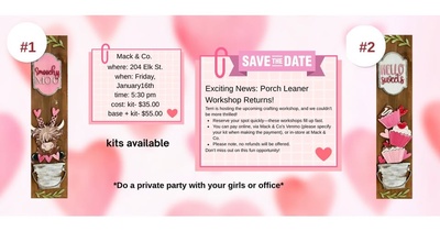 Join Terri for a crafty night of fun! After the holiday whirlwind, splash some seasonal color on your porch. Grab a friend and escape the house for a bit! This workshop is a hot ticket, so lock in your spot with payment pronto! The deadline to sign up is Friday, January 4th and you can pay through Mack & Co Venmo or at the Mack & Co store. Let us know which kit tickles your fancy or if you need the whole shebang! Kits will be available after the class date. Sorry, no refunds.